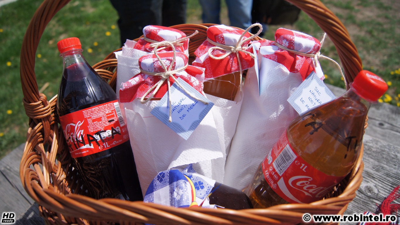 - Coșul cu băuturi, de la pensiunea Faur de lângă Sebeș – Am cumpărat trei litri de sc de mere, separat, ca să am ce bea, în timp ce scriu aceste rânduri