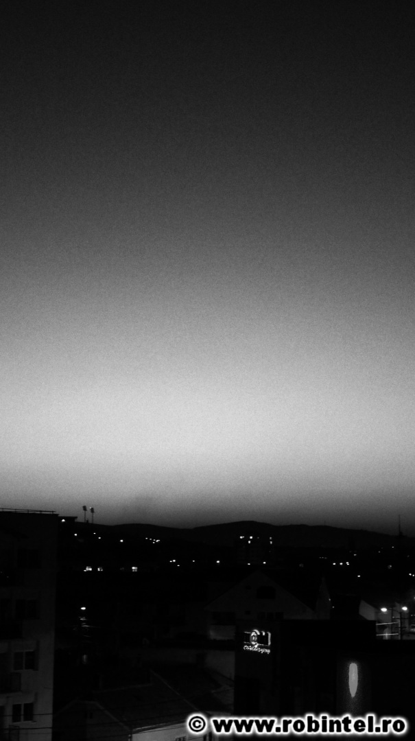 În fine, dacă o vedeți, chiar și slab, folosiți focalizarea manuală (dacă vă pricepeți cu ea) spre infinit și modul HDR (culorile ies nenatural, ca mai sus, dar detaliile – dacă există, vor deveni vizibile) ca să o reliefați față de alte artefacte fotografice fără interes.