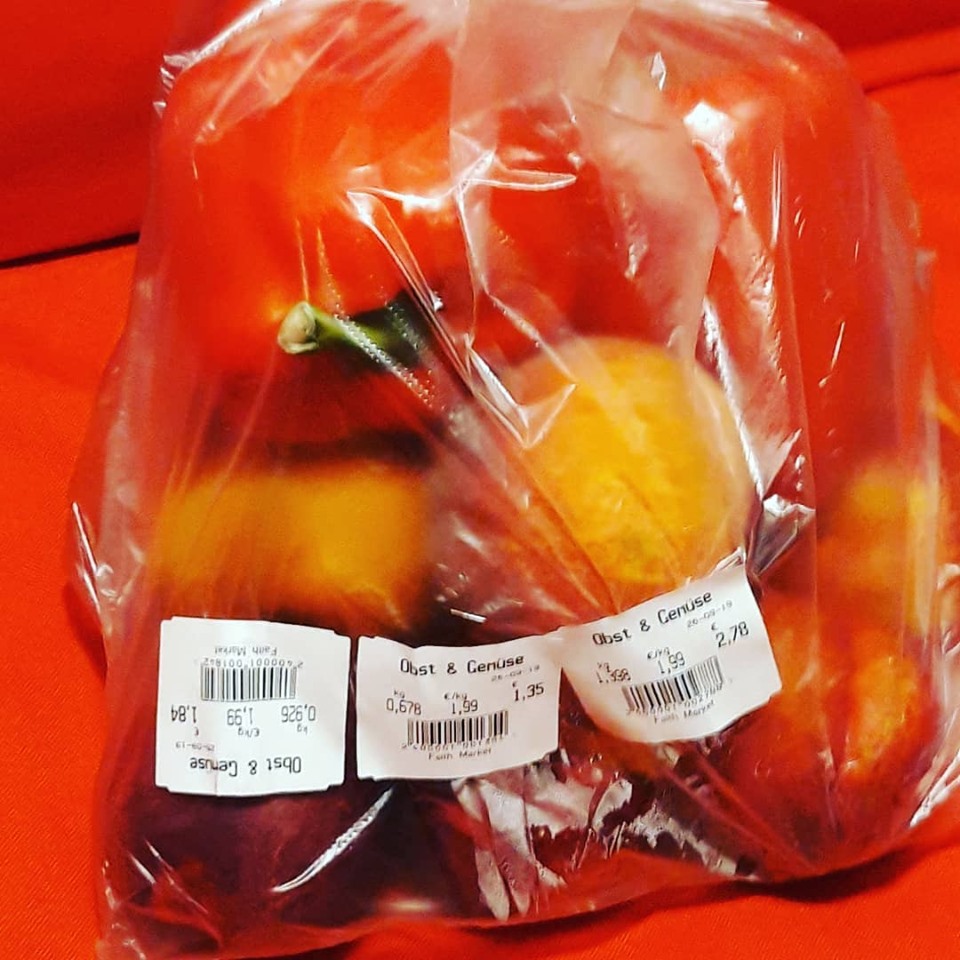 - Să punem, dacă nu avem plasă refolosibilă, mai multe produse în aceeași pungă, desigur, după ce le cântărim separat.
