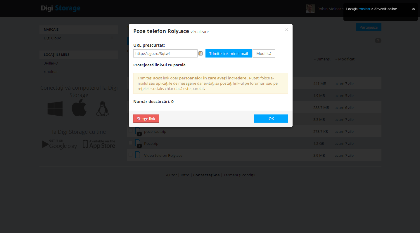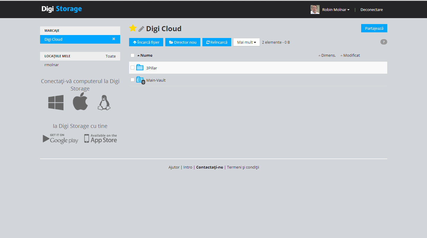 Inițial, n-am fost tentat să scriu, pentru că interfața este cam rudimentară, după cum se vede și din poze. Dar știți ce m-a frapat? Viteza de upload de la mine din computer în cloud-ul RDS-RCS și anume eu am abonamentul maxim de internet de la ei, FiberLink 1000, cu 1000Mbps la download din rețeaua metropolitană și 100 Mbps upload în rețeaua metropolitană, respectiv am activat serviciul DigiStorage cu 170 de GB de spațiu de stocare la doar 17 lei.