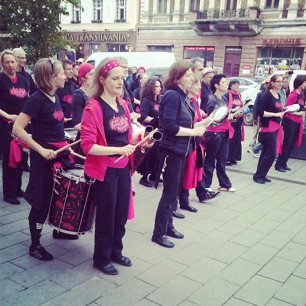 Adică festivalul muzicii Jazz, Blues și al vinului, în această seară, în Piața Unirii, unde fanfara berlineză Drum Kitchen a susținut un concert live de-a lungul străzii Eroilor din Cluj.