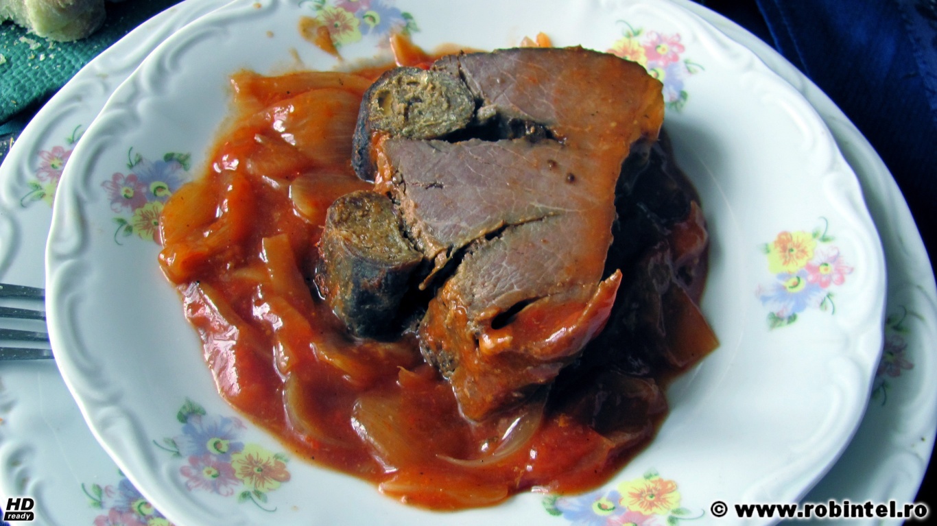 Să începem cu începutul. Eu nu mănânc ceapă fiartă. Dar am mâncat o nebunie de mușchi de vită fiert-copt cu sos de ceapă și roșii de mi s-a topit limba în gură și era să mă înec cu ea.