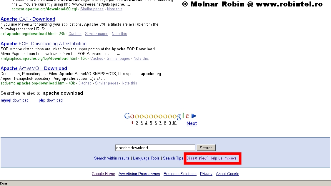 Să revin, feature-ul cu pricina este posibilitatea de a înştiinţa Google că nu eşti satisfăcut de rezultate, aşa cum reiese şi din poză.
