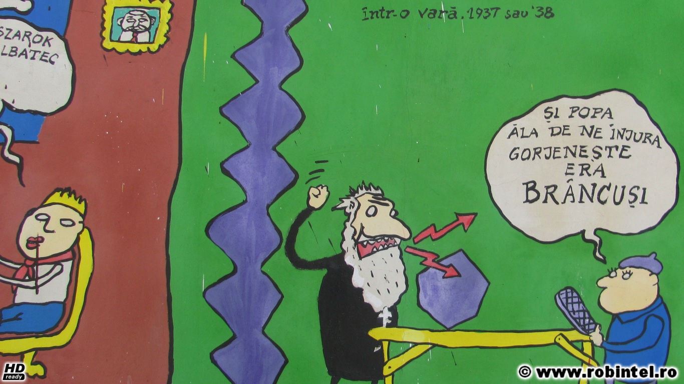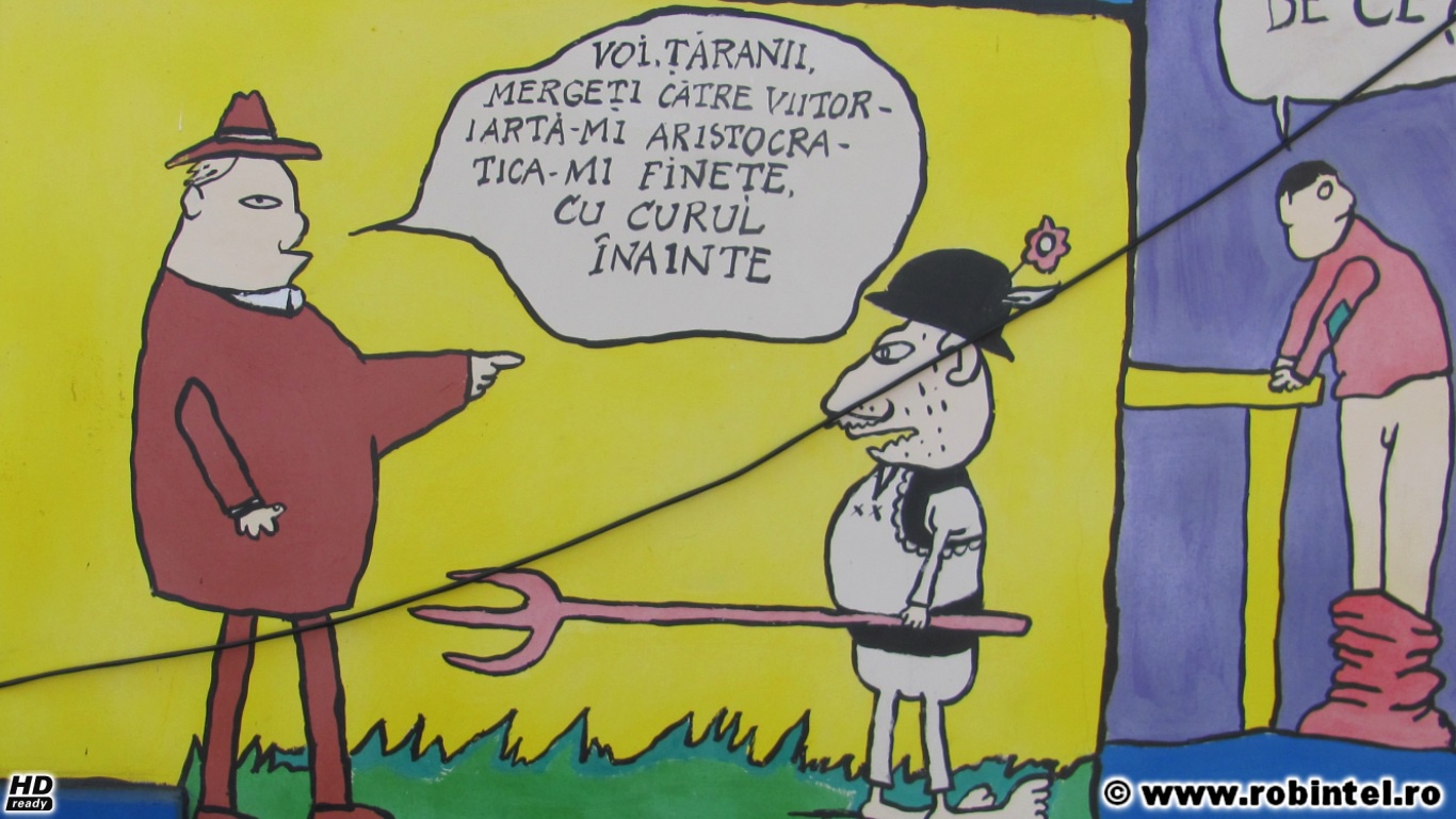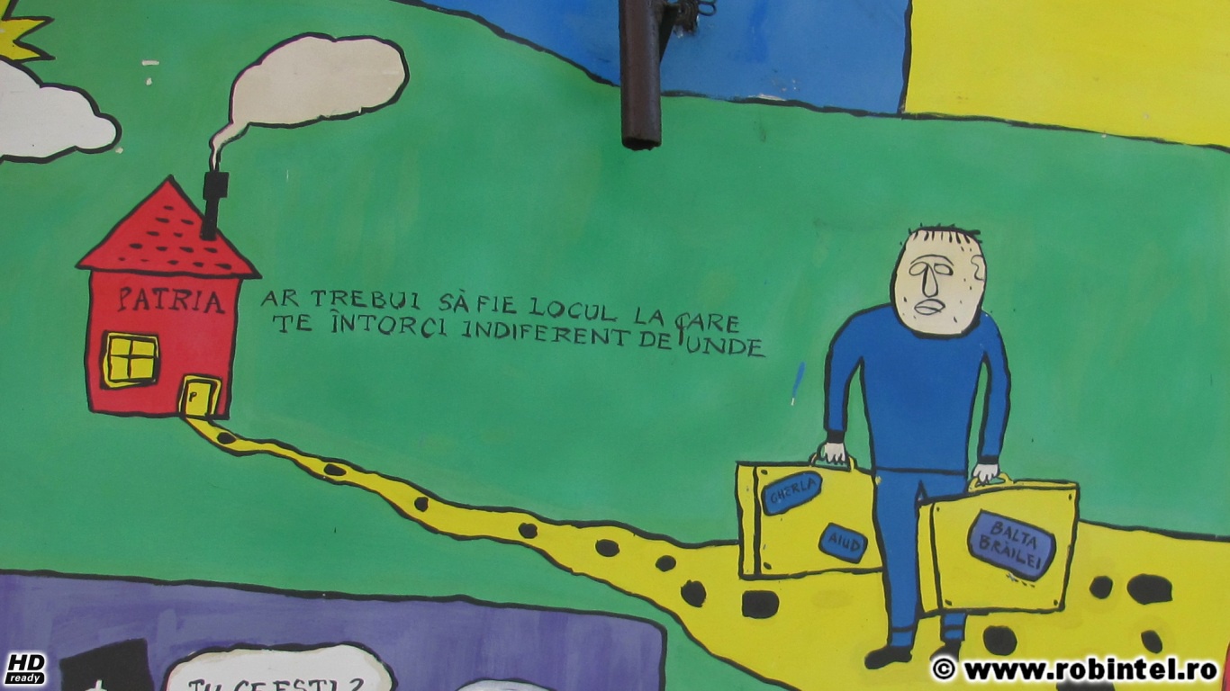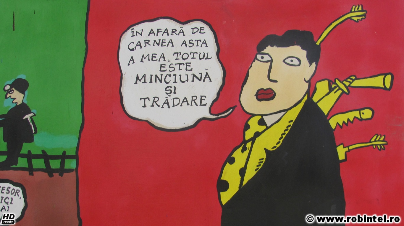 Oricând aveți drum prin Valea Jiului, vă invit să mergeți și până acolo, să vă bucurați de umorul select cu 100% inteligență și 0% țâțe și 0% hăhăieli ridicole. Și vă invit, prin intermediul citatelor de mai jos, pictate de niște copii, să-l cunoaștem pe acest cvasi-anonim genial al literaturii noastre.